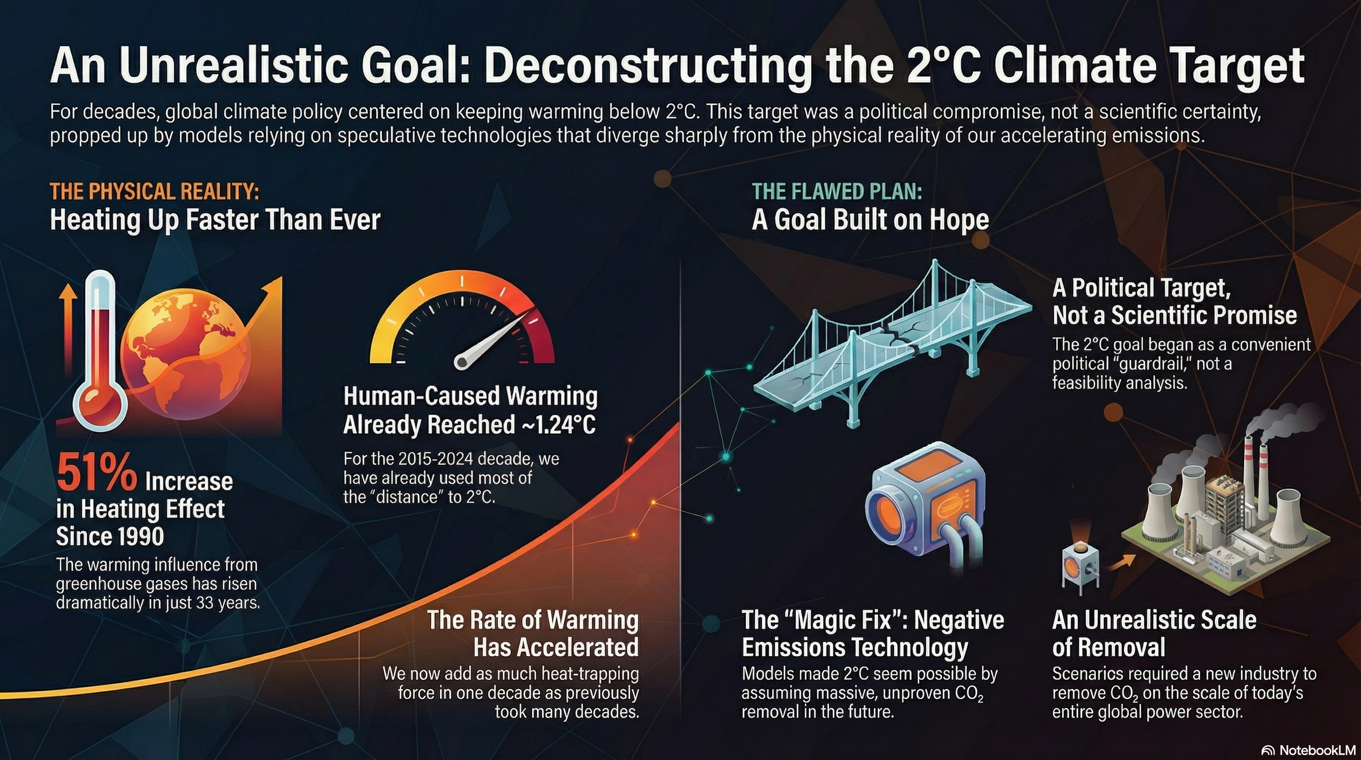 The key question here is not only “why is 2 °C out of reach?” but a more civic one: “how did we end up with billions of dollars of policy, activism, and even radical politics oriented around a target that was structurally impossible under its own stated constraints?”